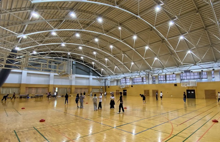 いつもと同じとても広い体育館で、バスケットコートが2面もある開放的な空間で実施。